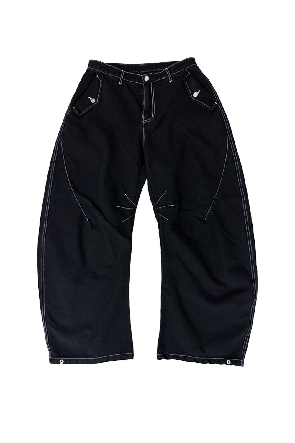 스티치 포인트가 들어간 커브드 데님팬츠입니다.